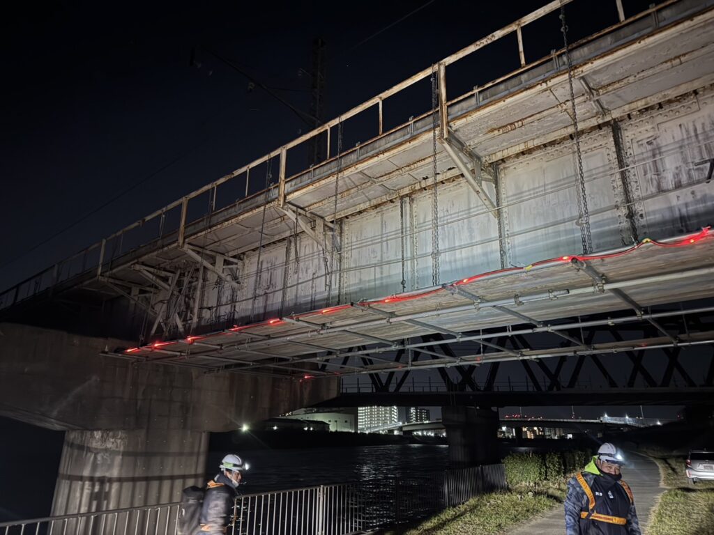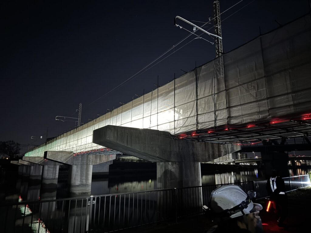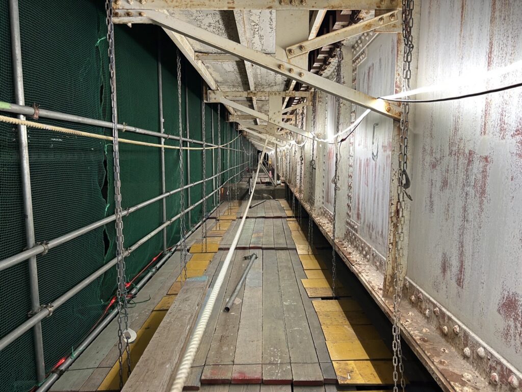 吊り足場を使うことで、立体的な構造物の下側や側面での作業が安全かつ効率的に行えます。