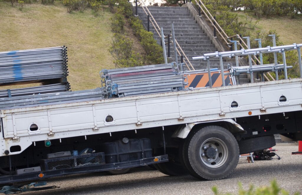 長い足場材を載せる場合、トラックの荷台の長さに注意が必要です。荷台よりも長い足場材は、はみ出してしまう可能性があります。そのため、適切な位置に配置し、しっかりと固定することが重要です。