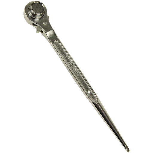 ラチェットレンチはガチャ・シノと呼ばれることもある道具で、ボルトやナットを回すためのレンチとラチェットが一緒になっているものです。建設現場ではボルトをしめるだけではなく直交クランプ類を締めたり、番線を縛ったりする際にも使用するため先のとがったものがおすすめです。